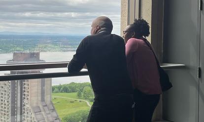 Pour la dernière journée de ce séjour exploratoire, notre groupe de convaincu s’est dirigé vers l’Observatoire de la Capitale afin d’y admirer la ville de Québec à partir de son plus haut point de vue. Cette vue panoramique de la région a pu éblouir le cœur des participants. Ce fut aussi l’occasion de leur partager davantage d’éléments historiques et culturelles du patrimoine québécois afin d’améliorer leur compréhension de l’identité québécoise, ce qui est un aspect important à considérer dans le processus d’intégration à une nouvelle culture.